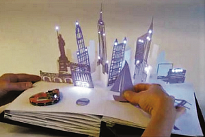 Дизайнеры Джи Ки, Лиа Бачли и Чен Чью создали книжку-мечту дошколят. В Electronic Popables нет букв, зато есть огромные «всплывающие» картинками, умеющие петь, мигать и гулять в пределах страницы. Авторы утверждают, что они подготовили иллюстрацию, а читателям остаётся придумать историю.
