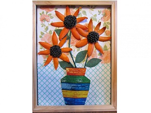 - Пофантазируем: на скатерть упали семечки и лепестки. Подсолнухи созрели!