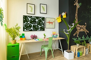 Сегодня речь пойдёт об озеленении детской комнаты. Растения придают интерьеру завершённый вид и особый уют. С помощью цветов и каких-то аксессуаров, например, диванных подушек такого же оттенка, можно сделать цветовой акцент. Растения, а точнее их успокаивающий зелёный цвет, являются отличным антидепрессантом, который будет востребован и в детской комнате, наравне с родительской спальней или гостиной.