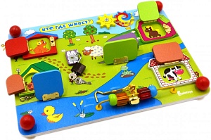 Итак, что же такое «бизиборд»? – это деревянная доска, к которой прикрепляют массу всевозможных предметов, преимущественно с примитивной механикой для тренировки мелкой моторики и наглядно образного мышления. Стандартного набора деталей для бизиборда не существует и существовать не может, всё зависит от производителя и от пожеланий родителей, но всё-таки основными элементами служат:- предметы швейной фурнитуры;