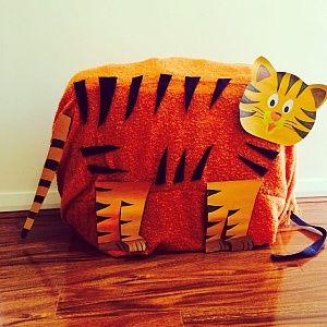 Лайфхак: если закрепить ткань, которой обтягиваете чемодан снизу, то можно оставить игрушку открывающейся. В тигре у нас, например, хранится много мягких игрушек.
