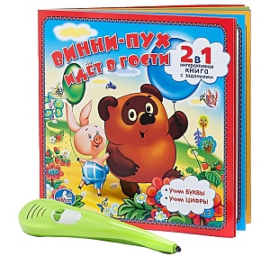 - Умная ручка «Винни-Пух и интерактивная книга с заданиями» по мотивам всеми любимой сказки. Книга имеет звуковые эффекты, которые можно благодаря регулировке звука изменять. Здесь режимы работы такие же, как и у предыдущей описанной нами ручки. А вот задания иные. Имеющая 11 обучающих программ книга позволяет ребёнку запомнить буквы русского алфавита, выучить цифры в пределах первого десятка, обогатить словарный запас. Производитель ТМ «Умка» информирует, что издание разработано при участии высококвалифицированных педагогов, поэтому старается учесть все особенности развития детей младшего дошкольного возраста. Исходя из этого, волшебная книга работает над развитием внимания, памяти, расширением кругозора малыша.