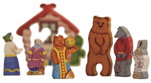 Игрушка изготовлена из натурального дерева. Фактура дерева приятна на ощупь, игрушка раскрашена вручную, краски мягкие, приглушённые, не яркие, но выразительные. Фигурки персонажей удачно передают образы и характеры персонажей, достаточно устойчивы, удобны для игры детей от 1,5 до 6 лет.
