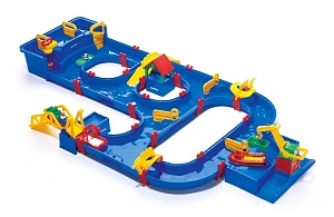 Идеальный набор для экспериментирования с водой и разыгрывания разнообразных сюжетов. Может использоваться как в помещении, так и на улице. Игровые наборы серии AquaPlay предназначены для игр с водой, но если воду слить, то по каналам, в которых курсировали корабли, смогут легко перемещаться машинки и грузовички подходящих размеров. Специально для случаев использования комплекса без воды на дне каналов нанесена дорожная разметка. Систему каналов можно постоянно перестраивать, добавляя новые компоненты. Стыки треков герметичны, поэтому не стоит бояться протечек. В сложенном виде игрушка занимает мало места, так как складывается в специальный чемоданчик.