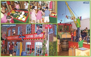 Мы оказываемся на строительной площадке с подъёмным краном и разными конструкциями, из которых можно построить свой дом. Желающие могут попробовать управлять грузовиком, доставляющим на площадку строительные материалы. Наигравшись в строителей, ставим штамп на паспортной страничке «Стройка».Пошивочная мастерская