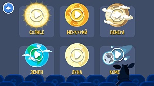 Приложение создано специально для малышей. Яркая анимация и увлекательные игры не дадут им соскучиться. Ребёнок 3-х лет вполне может самостоятельно поиграть в приложение, освоив правила предложенных игр. В первом разделе нужно нажимать на изображения планет – тогда будет произноситься их название, во втором разделе предлагается найти сопоставить картинки и их тени, а в третьем – поиграть в мемори.
