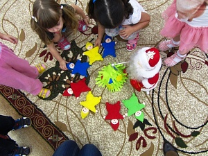 «Знакомство с гномиками». На первом занятии можно познакомить детей с гномиками, дать им возможность рассмотреть их, потрогать, потанцевать с гномиками.