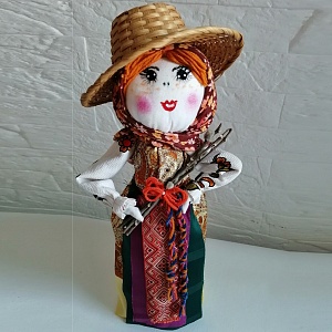 - Для завершения образа нашей кукле привязываем веточки вербы и надеваем соломенную шляпку. Вот такая симпатичная кукла Дуняша у нас получилась. Желаю творческих успехов!