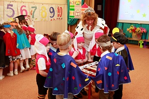 Шаг 7. Дети возвращаются домой на ковре-самолёте. Для достижения расслабленного состояния педагог спокойным голосом проговаривает: «Мы ложимся на волшебный ковёр-самолёт; ковёр плавно и медленно поднимается, несёт нас по небу, тихонечко покачивается, убаюкивая; ветерок нежно обдувает усталые тела, все отдыхают. Далеко внизу проплывают дома, поля, леса, реки и озёра. Постепенно ковёр-самолёт начинает снижаться и приземляется в нашей комнате. (Следует пауза.) Потягиваемся, делаем глубокий вдох и выдох, открываем глаза, медленно садимся и аккуратно встаём».