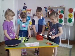 Воспитатель: Ребята, вы слышали? Как вы думаете, что это было? (Дети обсуждают с педагогом ситуацию и делают вывод о том, что произошла авария.) Правильно, произошла авария, потому что со светофором случилась беда: он сломался. Нужно срочно позвонить в дорожную инспекцию и сообщить о случившемся. (Воспитатель вместе с детьми «звонит» по телефону.)