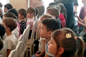 Муз. рук.: Ни для кого не секрет, что ноты живут в музыкальных произведениях. Я думаю, что там они и спрятались от весенней непогоды. А чтобы нам легче было их найти, позовем-ка к нам гостей! Гостей необыкновенных, музыкальных. Все они умеют исполнять музыку. (Дети встречают гостей аплодисментами, гости занимают свои места в зале.)