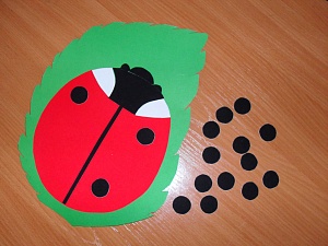 - «Божья коровка». Украшая крылья божьей коровки кружочками, дети закрепляют умение выделять в слове первый и последний звук.