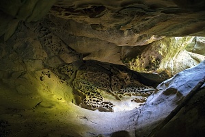 В конце подъёма тропа подводит к небольшому отверстию в отвесной скале. Это и есть вход к цели маршрута – гроту. С помощью деревянной лестницы попадаем в небольшую пещеру. Самое большое отличие от обычных пещер, которые в своём большинстве сырые, тёмные. мрачные и холодные, находящиеся глубоко под землёй, здесь всё с точностью наоборот. Чтобы попасть в «Крыло ангела», не нужно спускаться под землю, необходимо подняться вверх, под самые скалы, а потом ещё взобраться вверх по лестнице. Пол грота наклонный, уходит круто вверх, он состоит из песчаника, потому довольно скользкий. Первое впечатление, которое оставляет грот – неизменный восторг от этого чуда природы.