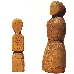 Поморье. Игрушки делались плотниками топором из балясин, опор для домов. До того как стать детскими игрушками, они скорее всего были северными идолами. В Вологодской губернии, в Чарозере, например, такие столбы с резными головами ставили перед домом. Это были мемориальные изображения хозяина и хозяйки. В словаре Даля есть слово «панка» (диалект Орловской области), обозначающее деревянную чашку.Моховики