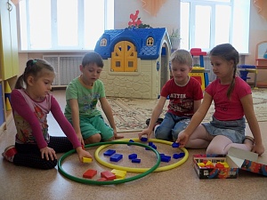 Игры с обручами помогают малышам развивать внимание, память, образное мышление, а также обучают операциям синтеза и анализа. Блоки Дьенеша можно приобрести у производственной компании «Корвет».