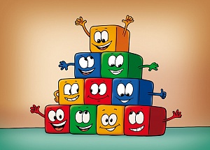 Жили-были десять кубиков, десять братьев. И были они не просто братьями, а близнецами. «Кто такие близнецы?» – спросите вы. Я объясню. Близнецы – значит очень похожие. До того похожие, что их невозможно отличить. Так вот, чтобы кубики хоть как-то можно было различать, их выкрасили в разные цвета: три кубика в жёлтый цвет, три кубика – в красный, два – в синий и ещё два – в зелёный.Кубики очень любили трудиться. Особенно им нравилось строить. Они строили с утра до самого вечера. Только ночью ничего не строили. Ночью они спали. Строили кубики всегда красиво и добротно. Стоило одному из кубиков предложить что-нибудь построить, как все остальные сразу соглашались. Настолько они были дружны. Что же умели строить кубики? Они умели строить пирамиду. Вот такую: