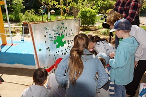Материалы и оборудование: хардпостер с фотографиями деревьев различного возраста и состояния, стрелки-указатели «Это важно!», «Это интересно!», «Сюда!» – 4шт.; карта «Деревья нашего детского сада», измерительная лента, цветной мелок, лупы, бинокли детские –3шт., калькулятор, телефон, бумага, карандаши, спил ствола дерева, блокноты для записей или зарисовок, саженец липы.