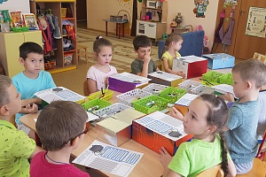 Оборудование и материалы: инженерные книги на каждого ребёнка, картонные коробки, картон, ножницы, клей, карандаши чёрнографитные, линейки, самоклеящаяся бумага, физкультминутка с использованием ИКТ, стаканчики мороженого из бумаги.