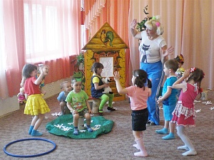 Лягушка: Молодцы, здорово получается. Ну, пока, мне пора! (Лягушка прощается и возвращается на кочку.)