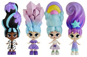 Сначала «вырастает» цветок, яркий переливающийся кристалл, волшебная радуга или сладкий манящий десерт, который впоследствии оказывается уникальной стильной причёской вашей куколки. Немного за неё потянув, можно достать и саму куколку.