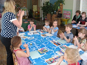 Воспитатель: Итак, все работы готовы, рассматриваем пчёлок и сажаем на цветочную поляну. Девочки и мальчики, посмотрите, какая красивая трудолюбивая пчелиная семья на нашей полянке собирает мёд. Хлопните в ладоши, если то, что я говорю верно. (Дидактическая игра «Верно или нет».)