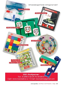 «Мозаика Путешествие из Петербурга в Москву и обратно» состоит из шестнадцати плиток, каждая из которых — фрагмент общей картинки. Перемещая их по специальным прорезям, игрок должен собрать все части в единое целое. По условию этой головоломки нужно сначала выстроить машинки и мотоциклы, которые едут из Петербурга в Москву, а затем расположить их таким образом, чтобы они ехали в обратном направлении. Дополнительно в ходе игры можно менять последовательность, в которой будет передвигаться транспорт. Все эти головоломки — не просто яркие и красивые картинки, это ещё и увлекательные тренажёры для развития комбинаторных способностей, памяти, воображения, логического и пространственного мышления. О других увлекательных играх Компании «РосКреатив» вы можете прочитать в следующем номере нашего журнала.