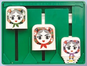 Правила игры: матрёшки передвигаются по одной, могут останавливаться в любом секторе, можно надевать большую матрёшку на меньшую.