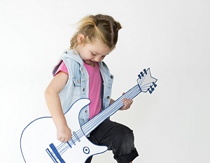 Надо включить песню, где присутствует инструмент, на котором кроха будет играть. Пусть ребёнок представит, что он известный пианист, гитарист или певец и сейчас у него концерт.
