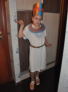 Главное, конечно, идея. Придумать образ – сделать полдела. Потому что создавать маскарадный костюм можно и из подручных материалов, не проводя дни и ночи в магазинах ткани и за швейной машинкой. Именно так поступила наша семья. Мы сами ничего дома не шьём, только вяжем. Никаких отрезов и ненужных кусков не храним. Кроме того, хотелось создать костюм лёгкий и простой в повторении – вдруг кому-то тоже захочется на своём празднике стать Царицей Нила!