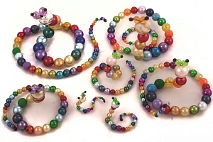 Наибольший эффект в развитии мелкой моторики достигается на авторских занятиях под названием «Волшебные бусины». Размер бусин от 3 до 20 мм позволяет варьировать задания по сложности. Элементарное низание ребёнок 5–6 лет с удовольствием осваивает в технике плетения на твёрдой основе — проволоке, с использованием бусин диаметром 6, 8, 10, 12 мм.