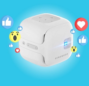 Портативный кинотеатр МУЛЬТиКУБИК от Cinemood, который называют также «карманным кинотеатром», показывает любимые фильмы и мультфильмы на любой поверхности, превращает потолок или стену в большой киноэкран!Это устройство весит всего 300 грамм и при этом работает до 5 часов подряд без подзарядки. С его помощью можно смотреть мультфильмы не только на стене, но и на потолке, да и в принципе на чём угодно! Он с лёгкостью превращает любую поверхность в киноэкран шириной до трёх метров, создавая атмосферу кинотеатра и дома, и в дороге. В нём предустановлено более ста серий мультфильмов, а также 20 диафильмов, 32 аудиосказки, 11 альбомов с колыбельными и 6 уроков театра теней.