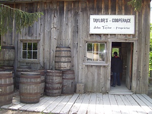 Волонтёр демонстрирует нам лудильное ремесло. А вот - кожевенная мастерская. Это – домик мебельных дел мастера, разумеется со всеми необходимыми инструментами. Это – хлебопекарня. Там волонтёрка месит тесто. И ставит каравай выпекаться в печь. А ещё нам встречаются: сапожная мастерская, деревенская типография, здесь можно попробовать себя в типографском деле, освоив искусство печатания. А ещё нам встретились деревенская школа, пожарная часть с пожарной телегой или дилижансом, деревенская лавка (магазин), дом деревенского доктора, местный «дом культуры», или дом советов и собраний, портняжная мастерская.