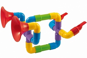Другой конструктор предлагает ребятам собрать из предложенных деталей музыкальный инструмент на свой выбор. В наборе 12 L-образных форм, 4 прямых трубки с отверстиями, 2 Т-образные формы, 2 Х-образные трубы… Детали конструктора могут быть собраны различными способами, в результате чего можно получить саксофон, флейту или трубу. Если для вашего малыша такая игрушка слишком сложна, можно выбрать аналог с меньшим количеством деталей. Например, сборный саксофон адресован детям от года. Игрушка состоит из 7-ми крупных деталей, но даже в ней центральные детали можно собирать в разной последовательности.