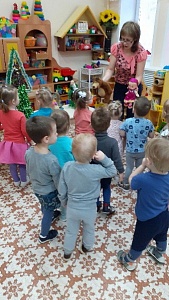 - Пальчиковая игра «Ёлка», подвижная игра «Раз, два, три, к ёлочке беги», хороводная игра «Ай, да ёлочка», исполнение песен «Не рубите ёлочку», «Наша ёлка хороша».