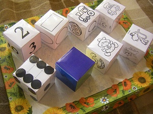 Можно также сделать кубик с цифрами и предложить ребёнку заменить кубик с точками на кубик с цифрами, обозначив количество выпавших точек.