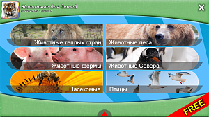 В приложении есть наборы карточек по различным темам: домашние животные, фрукты, овощи, природа и растения. Карточки выполнены в реалистичной манере на белом фоне. Ребёнок смотрит на картинку, диктор или мама произносит её название. Если мы изучаем животных, то тут они ещё и издают характерные звуки. Несомненные плюсы приложения – быстро, в игровой форме нарабатывается пассивный словарный запас, и оно всегда с собой (в дороге, в поликлинике, на прогулке и дома).