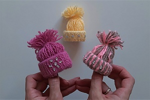 Такими шапочками можно украсить не только новогоднюю красавицу, но и подарить их в качестве сувенира родным и близким. По желанию, готовые игрушки можно украсить стразами, бусинами или пайетками!