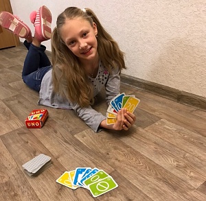 Моя дочь Вика очень любит играть в настольные игры. Одной из её любимых игр является «UNO», потому что в неё мы можем поиграть и вдвоём, необязательно большое количество народа. Про эту игру я ничего раньше не слышала. Рассказала мне про неё сама Вика, поиграв у друзей в гостях. Мне самой стало интересно, что же это такое. И, увидев её в одном из ближайших магазинов, я купила эту игру. И вы знаете, ни капли об этом не пожалела!