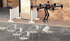 Видеоролик наглядно демонстрирует все его способности: дрон поднимает стулья, перетаскивает ёмкости с водой, может за что-то ухватиться. И да, похоже, манипуляторы дрона — это всё же ноги, а не руки. Посмотрите, как он на них приземляется, подобно птице!