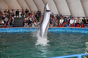 Представление с дельфинами потрясло меня до глубины души! Какие же они умные, послушные! Дельфины играли с мячом, пели, прыгали сквозь обруч, катали тренера. Прошло столько лет, а я до сих пор помню, что дельфина-белугу называли Егором. Морские котики и моржи показывали свои умения: считали, танцевали. После представления можно было сфотографироваться с дельфином и самому побыть в роли тренера. Вытягиваешь вперёд руку, и через несколько минут до твоей ладошки дотрагивается мокрый гладкий нос этого чудо-животного. И страшно, и интересно! А маме разрешили подкормить дельфина за работу вкусной рыбкой. Он выскользнул из воды на площадку и с готовностью открыл рот.