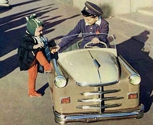 Эта натуралистичность неудивительна: машины для самых маленьких производились в Советском Союзе на серьёзных машиностроительных предприятиях. Многие модели напоминали реальные автомобили – с них же и делались. Если в 1950-е годы велосипед для большинства советских детей был пределом мечтаний, то в 1960-е многие малыши в СССР уже разъезжали по дворам на своих персональных автомобилях. Педальных, конечно.
