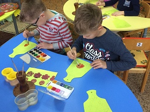 Задачи: развитие инициативы, активности и самостоятельности старших дошкольников в различных видах детской деятельности; уточнение представлений старших дошкольников о городецкой росписи, ковровской глиняной игрушке, развитие воображения; формирование умений у старших дошкольников передавать в рисунках красоту окружающих предметов, расписывать кистью акриловыми красками элементы городецкого растительного орнамента на разделочной доске; развитие коммуникативных навыков у дошкольников, умений выражать свои мысли и желания, использовать речь для построения речевого высказывания в ситуации общения; воспитание интереса и любви к русским традициям народно-прикладного искусства; формирование навыков самовыражения в творческой деятельности.
