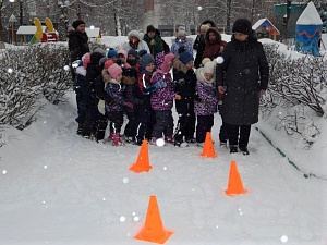 Воспитатель: Ребята, с волшебным колобком мы обязательно найдём Деда Мороза и поможем ему. Только нам нужно выйти на улицу. (Пока дети одеваются, педагог обсуждает с ними признаки зимы и погоду на улице.)