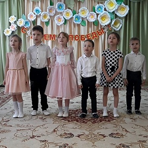 Ведущий: Сегодня мы отмечаем очень торжественный и важный праздник для всех людей нашей страны – День Победы! Посмотрите, ребята, как сегодня украшен наш музыкальный зал. Здесь красные гвоздики в память о тех героях, кто погиб в годы войны и так и не вернулся домой, здесь красные полотна, как реки крови, пролитой в борьбе с фашизмом, здесь звёзды, как олицетворение силы и чистоты нашей страны.