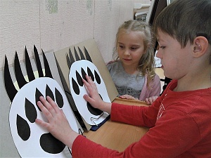 Сообщение детям в игровой форме интересных познавательных сведений о белых медведях. Например, когти на его передних лапах длинные (до 10 см), а на задних лапах они намного короче. Между пальцами передних лап есть плавательная перепонка. Ступни покрыты шерстью, на них есть «шишечки», чтобы лапы не скользили по льду. Шерстинки внутри полые, как соломинка для коктейля. Кожа у белого медведя чёрная. Он очень хороший пловец, ныряет он с открытыми глазами, охотится днём и ночью. Летом ест ягоды, корешки, яйца птиц, грибы, мох. В сильные морозы залегает в спячку.