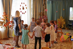 Осень: Конечно. Спасибо вам большое, ребята, за вашу помощь. Теперь мои друзья со мной и мне не будет здесь одиноко. (Под музыкальное сопровождение психологом проводится ритуал выхода из сказочной ситуации.)