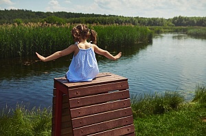 Воспитатель: Ну вот, все вещи собраны, пора отправляться в путь. Но на чём же мы поедем? На чём можно путешествовать по реке? (Ответы детей.) Давайте посмотрим ещё в конверт, может там будет подсказка. Посмотрите, ребята, да тут ещё что-то написано: «Выходите из группы, идите прямо по буквам». (Воспитатель и дети выходят из группы, спускаются по ступенькам и читают.) Ребята, какое слово у нас получилось?