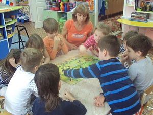 По сложившейся в нашей группе традиции дети участвуют в изготовлении дидактических игр. Сделанные своими руками, эти игры очень любимы и заигрываются, в прямом смысле слова, до дыр. Вначале мы вместе с детьми обсудили, какую игру о степи можно придумать, что и как будем делать в ближайшее время. У дошкольников столько творческих идей, такая фантазия, что порой трудность состоит в выборе одной игры из нескольких предлагаемых. Игру «Путешествие по степи» мы тоже сделали все вместе, причём дети были «главными в придумывании» и изготовлении игры, а я, как воспитатель, старалась их поддержать и, при необходимости, помочь. Именно дети предложили идею «путешествия по растениям». Мысль о том, что растения будут встречаться не случайно, а по временам года, возникла уже позже, в процессе рисования дошкольниками игрового поля.