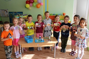 Раздаточный материал: пустые контейнеры от киндер-сюрпризов, разные крупы и макаронные изделия, фасоль, зубочистки, сахар, пуговицы, бисер, стеклянные шарики, монеты, опилки, песок; фломастеры, цветная бумага светлых тонов А4 и А5 для принтеров.