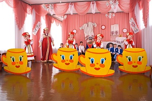 Вот он, русский самовар! (Выходит ребёнок в костюме самовара. Танец «Тульский самовар»)
